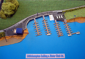 Model of new moorings currently under construction. On the West bank of the river Arun. Future plans afoot for a prestigious club house with full facilities. Hard standing storage area, car park and slip way. Closest to the harbour mouth. |